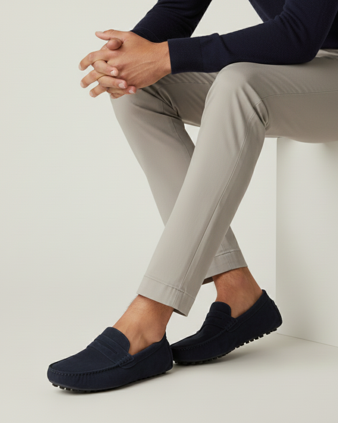 The Como Suede Driver is a timeless footwear classic designed for the gentleman who values leisure and luxury. Inspired by the scenic drives along Lake Como, these loafers feature a supple suede upper and the iconic moccasin construction. Whether behind the wheel or enjoying an alfresco lunch, they provide unmatched flexibility and an effortlessly sophisticated look.