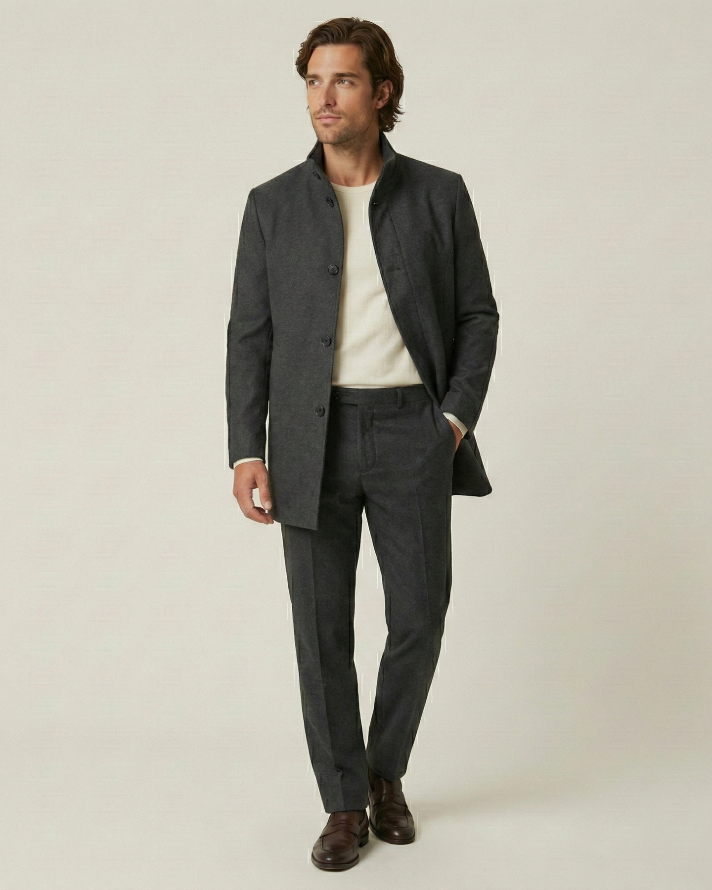 • Fabric: Premium heavyweight wool blend (Selected for warmth and structure).