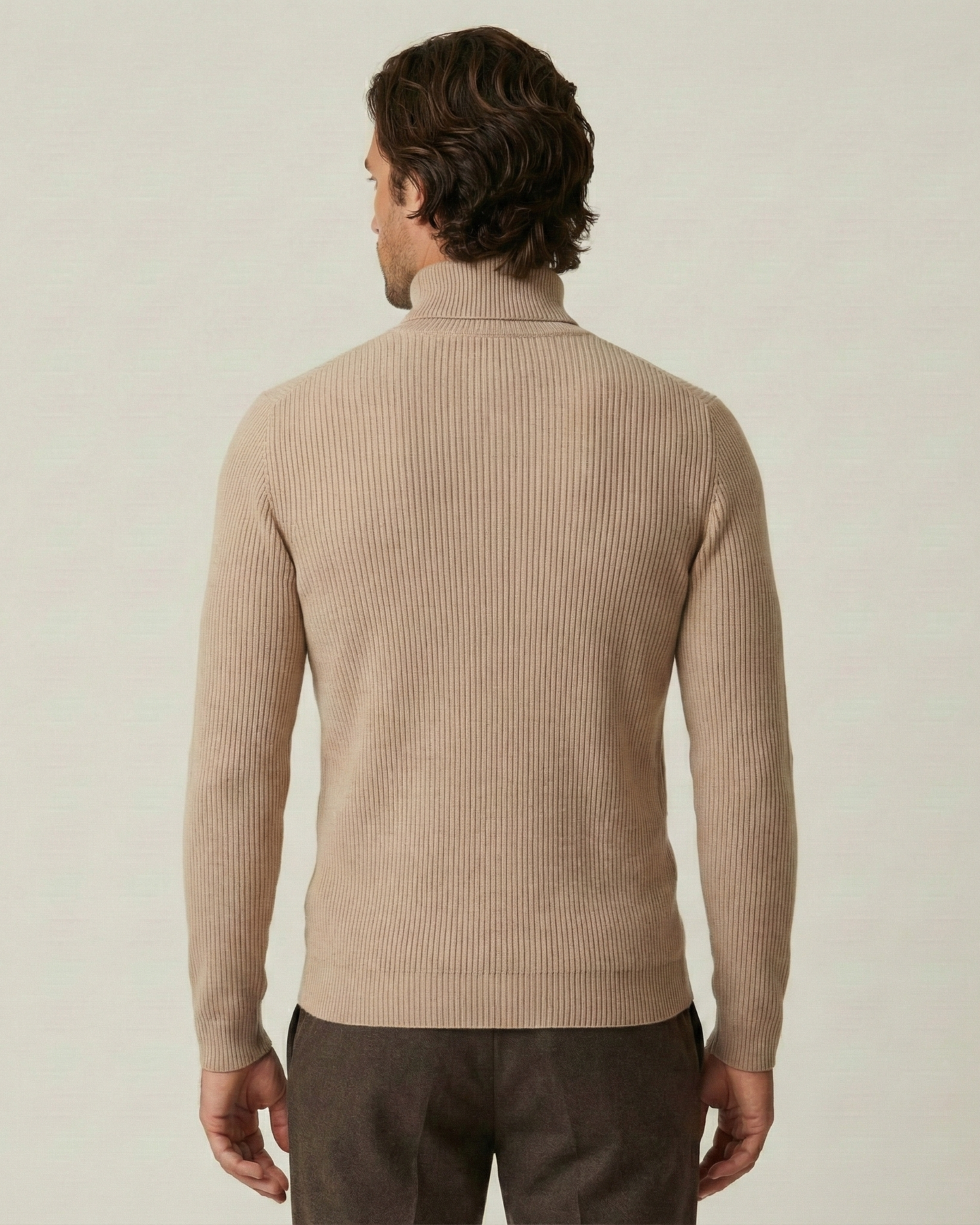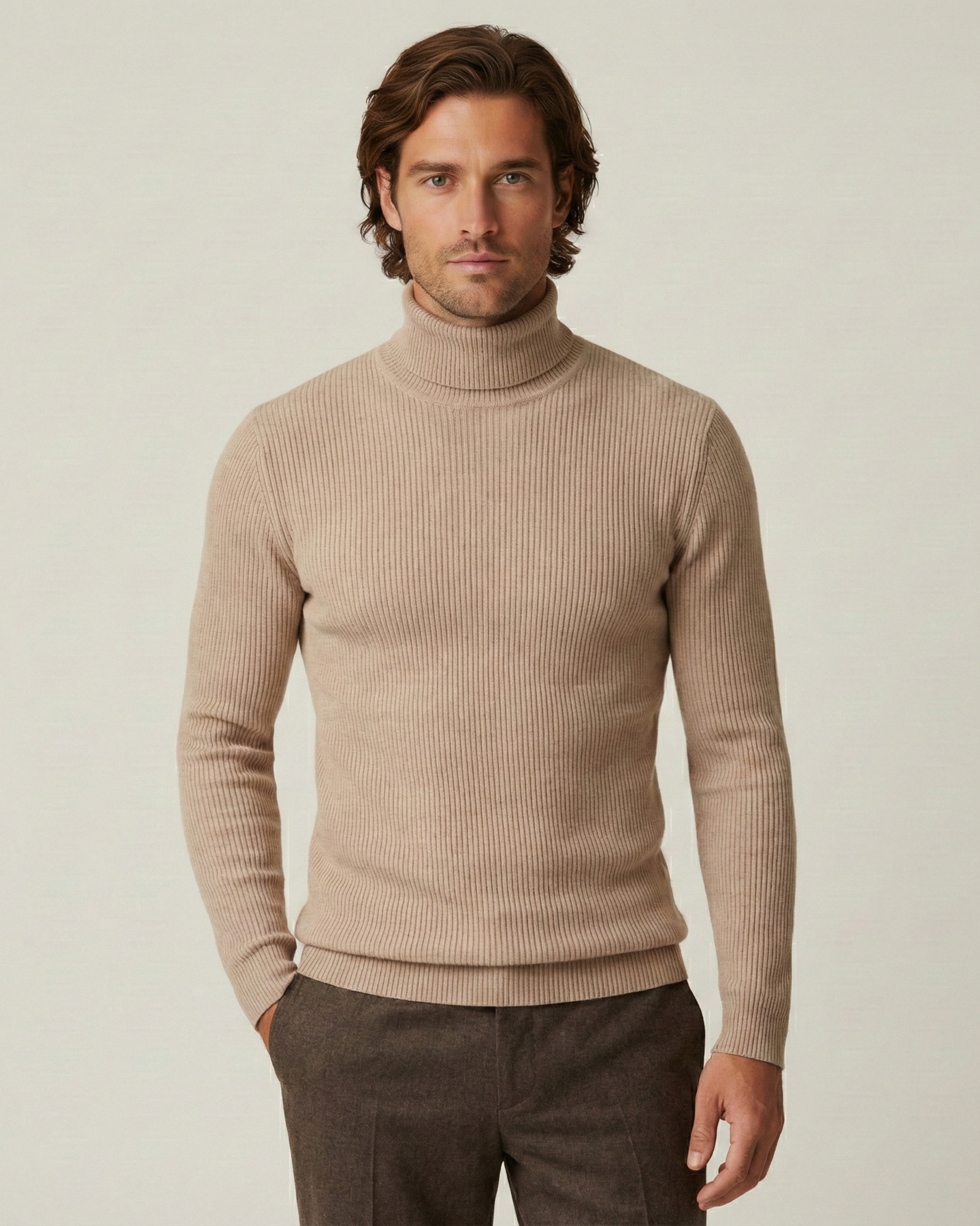 The Zurich Ribbed Turtleneck Sweater is a men's knitwear staple designed for the gentleman who values understated luxury. Featuring a structured high neck and a refined vertical rib knit, this piece offers the warmth of a classic turtleneck with a modern, streamlined silhouette. Whether worn under a blazer for a sharp office look or solo for a relaxed weekend, it provides exceptional comfort and effortless style.