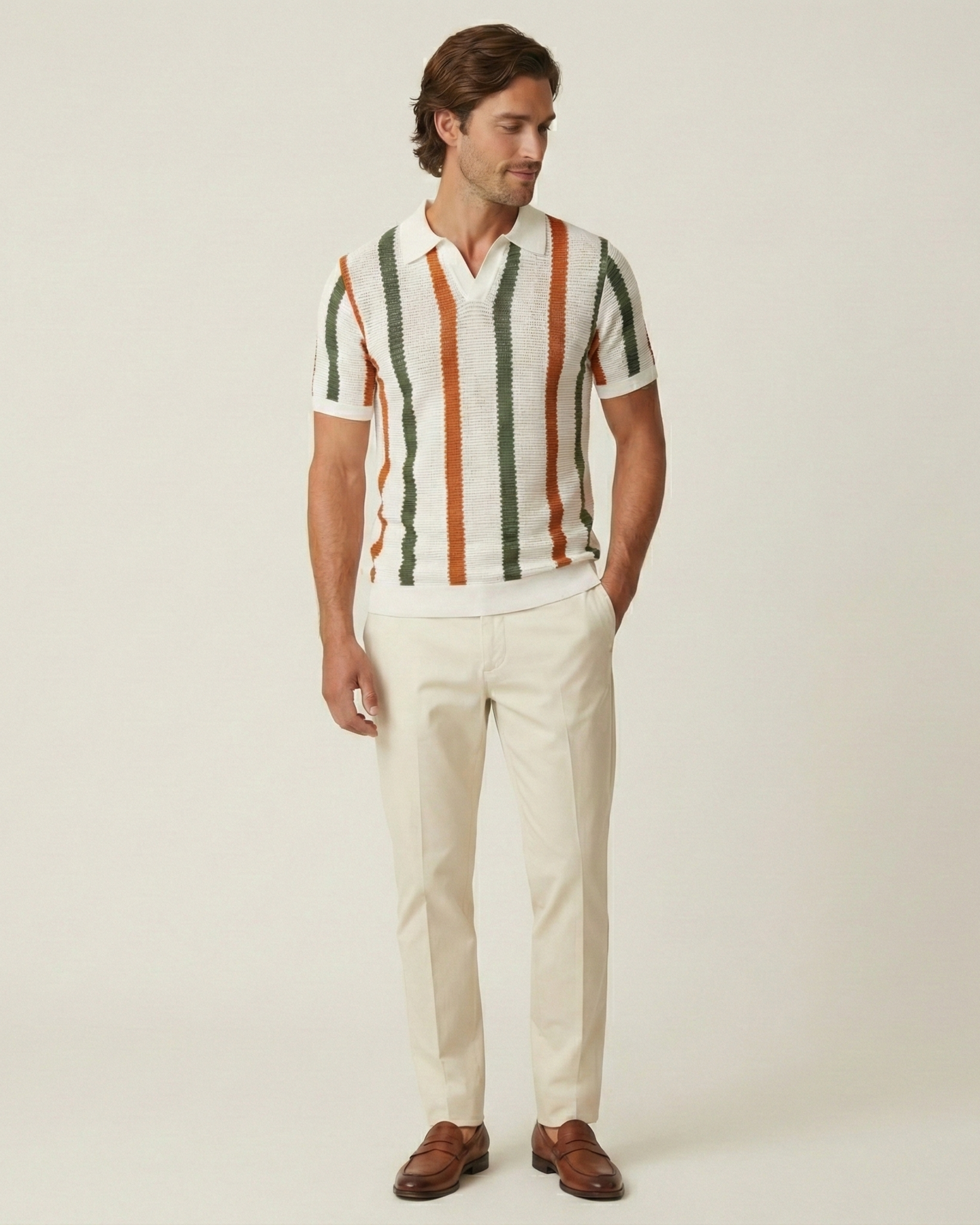 The Amalfi Ribbed Knit Polo is a summer knitwear essential designed for the gentleman who values relaxed sophistication. Inspired by the timeless style of the Italian coast, this piece features a textured vertical rib with contrasting stripes that elongate the torso. Whether worn with linen trousers for a seaside lunch or tailored shorts for a weekend drive, it delivers effortless charm and breathable comfort.