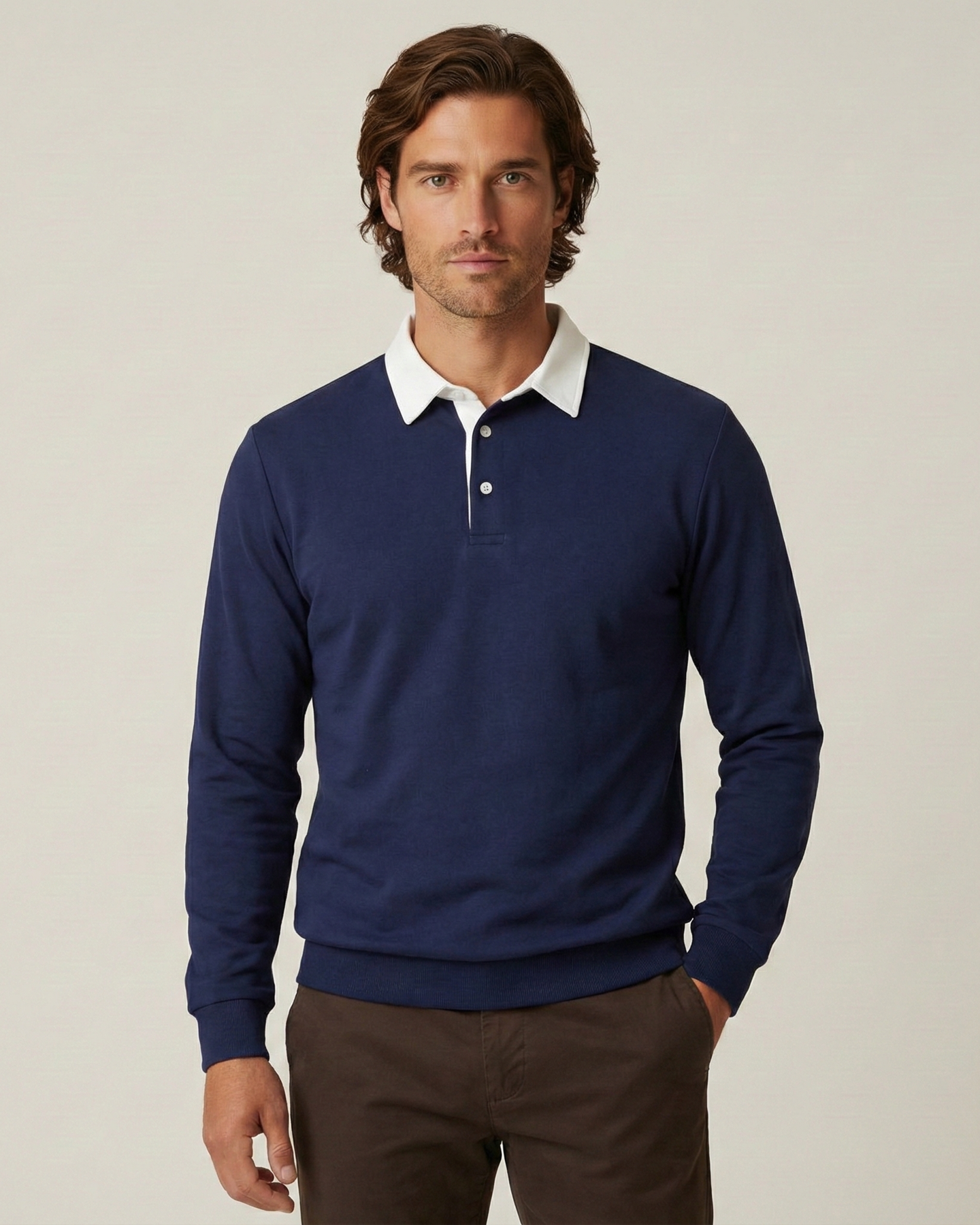 The Lugano Polo Sweatshirt is a versatile men's casual essential designed for the gentleman who values comfort without sacrificing style. Combining the relaxed feel of a sweatshirt with the sharp collar of a polo, this piece offers a polished alternative to standard loungewear. Whether paired with denim for a weekend outing or chinos for a relaxed office look, it delivers a clean, modern silhouette.